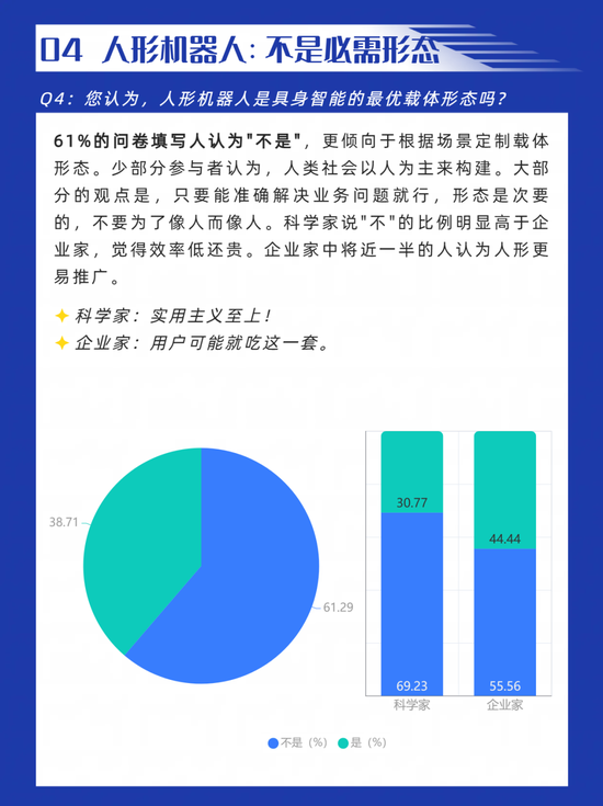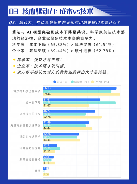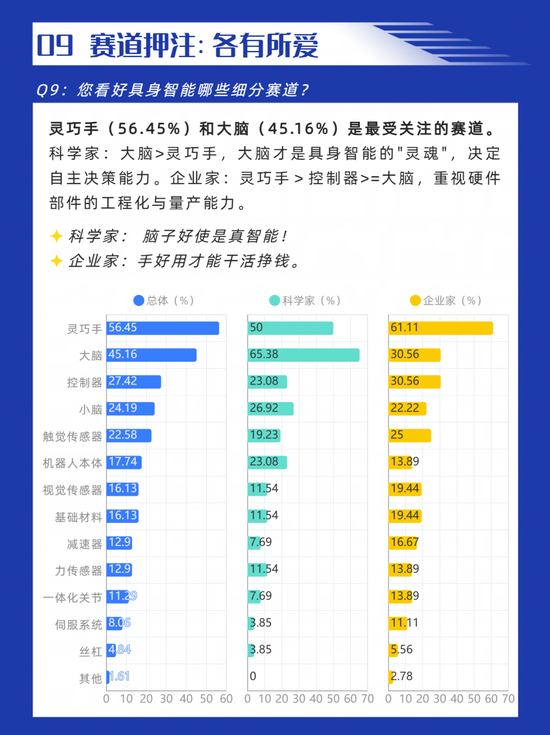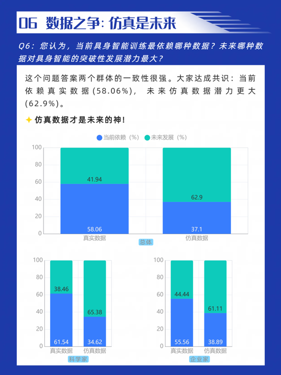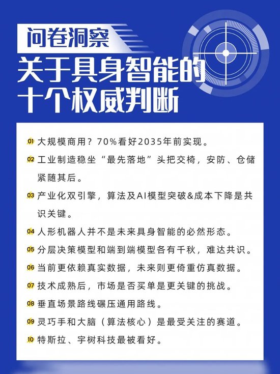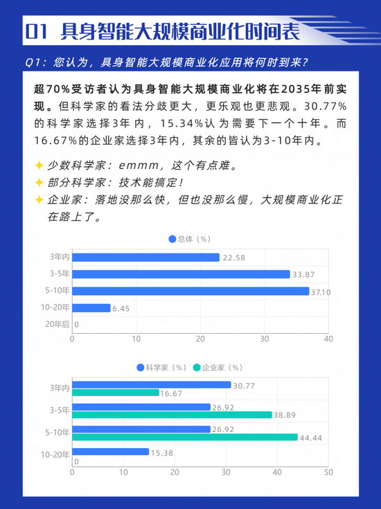 关于具身智能,我们有十个该领域的核心问题,询问了在场的科学家和企业家们。62份权威人士问卷,26份来自具身智能领域前沿科学家,36份来自上市公司核心高管。我们来看看他/她们对行业的洞察。